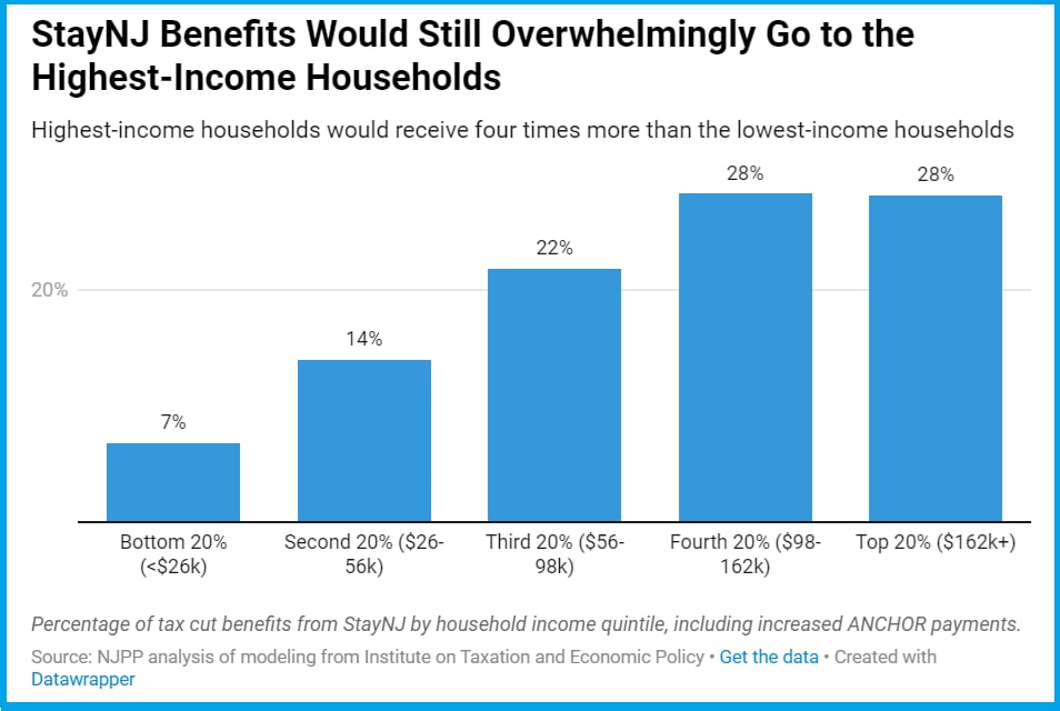 Critics have also called Stay NJ inequitable and regressive. Renters, who tend to be less affluent than homeowners, are not directly included in the benefit, unlike the ANCHOR program, which for the most recent benefit year paid $450 to renters, plus an extra $250 for seniors.