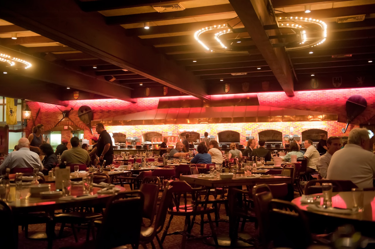 While the restaurant is known for its meats, the atmosphere is just as much a part of the dining experience. The Pub’s large dining area features low-lighting, stained glass windows, a bar and seating for 500 guests.