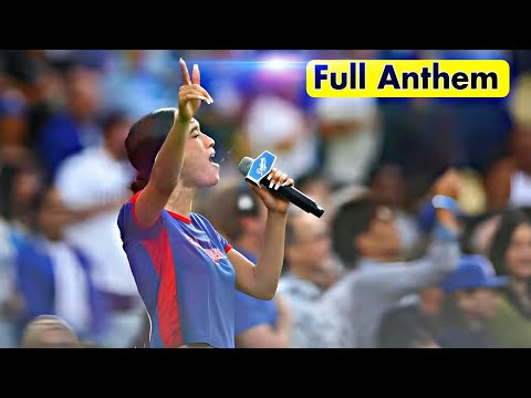 Hernandez then sang “El Pendon Estrellado” donning a Dominican Republic shirt before the Dodgers took on the San Fransico Giants. The singer then shared a second TikTok video, noting she was still very emotional from the experience.