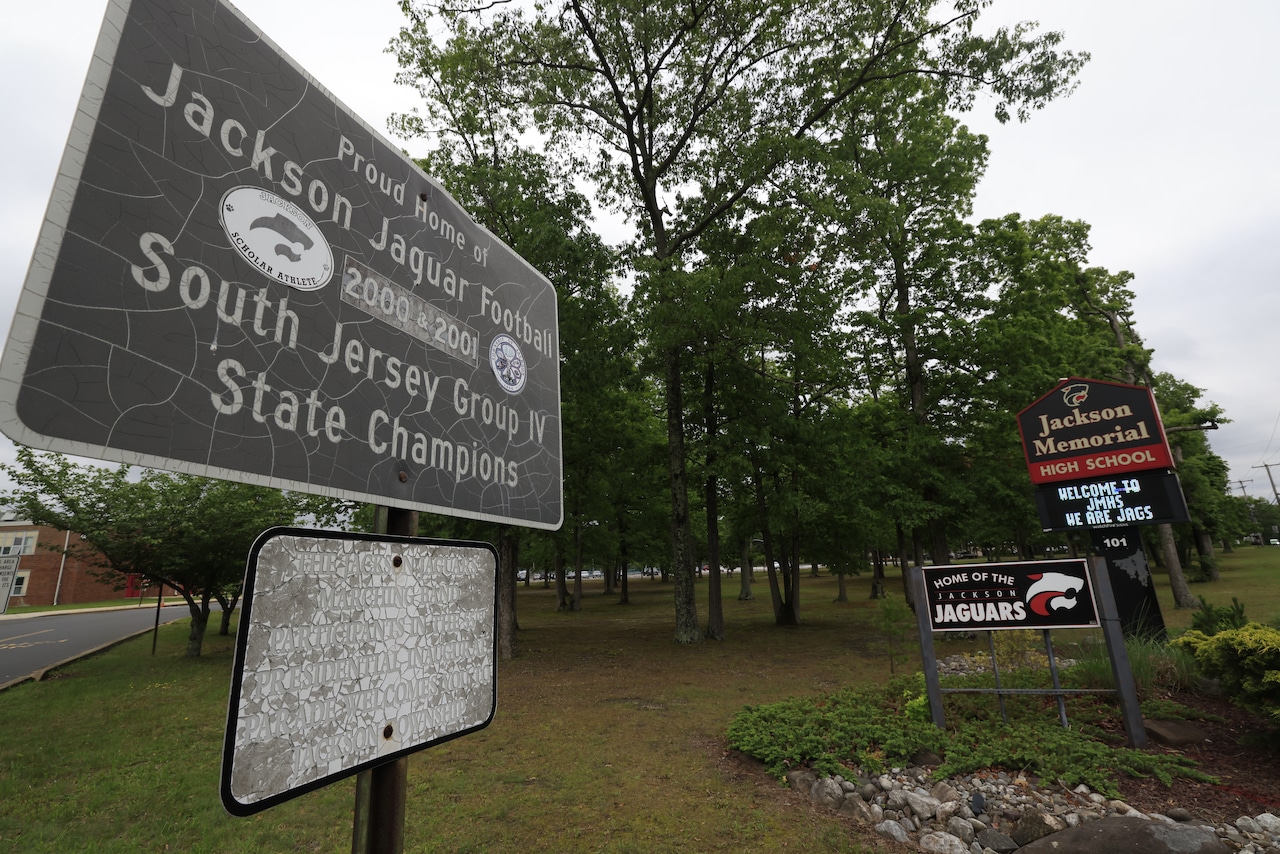 Signage outside Jackson Memorial High School, Thursday, May 29, 2025, in Jackson, N.J. This school will no longer be used as a high school and all operations will be merged into the facilities at Jackson Liberty High School and renamed Jackson Township High School. JTHS will include students currently attending Jackson Liberty and Jackson Memorial and will be the district’s only high school. Andrew Mills | NJ Advance Media for NJ.com